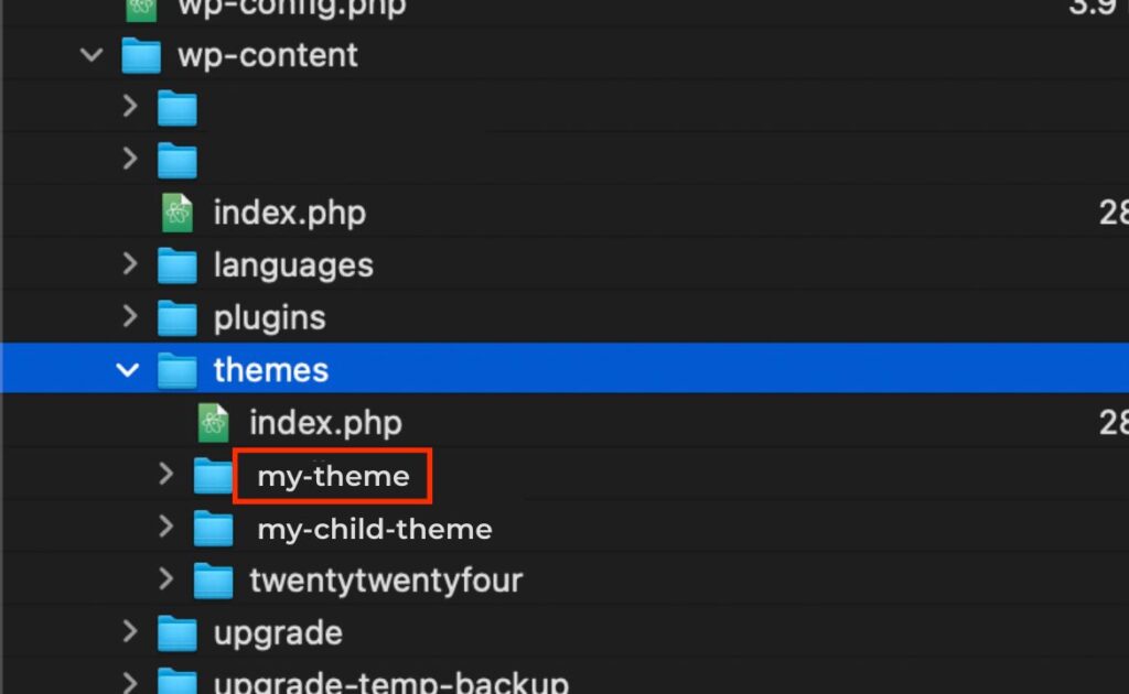 この手順は、サーバーにデフォルトテーマ(例: twentytwentyfour)がインストールされていることが前提です。 もしデフォルトテーマがない状態でリネームすると、サイトが真っ白になり状況が悪化します。 事前にthemesフォルダ内にデフォルトテーマがあることを必ず確認してください。